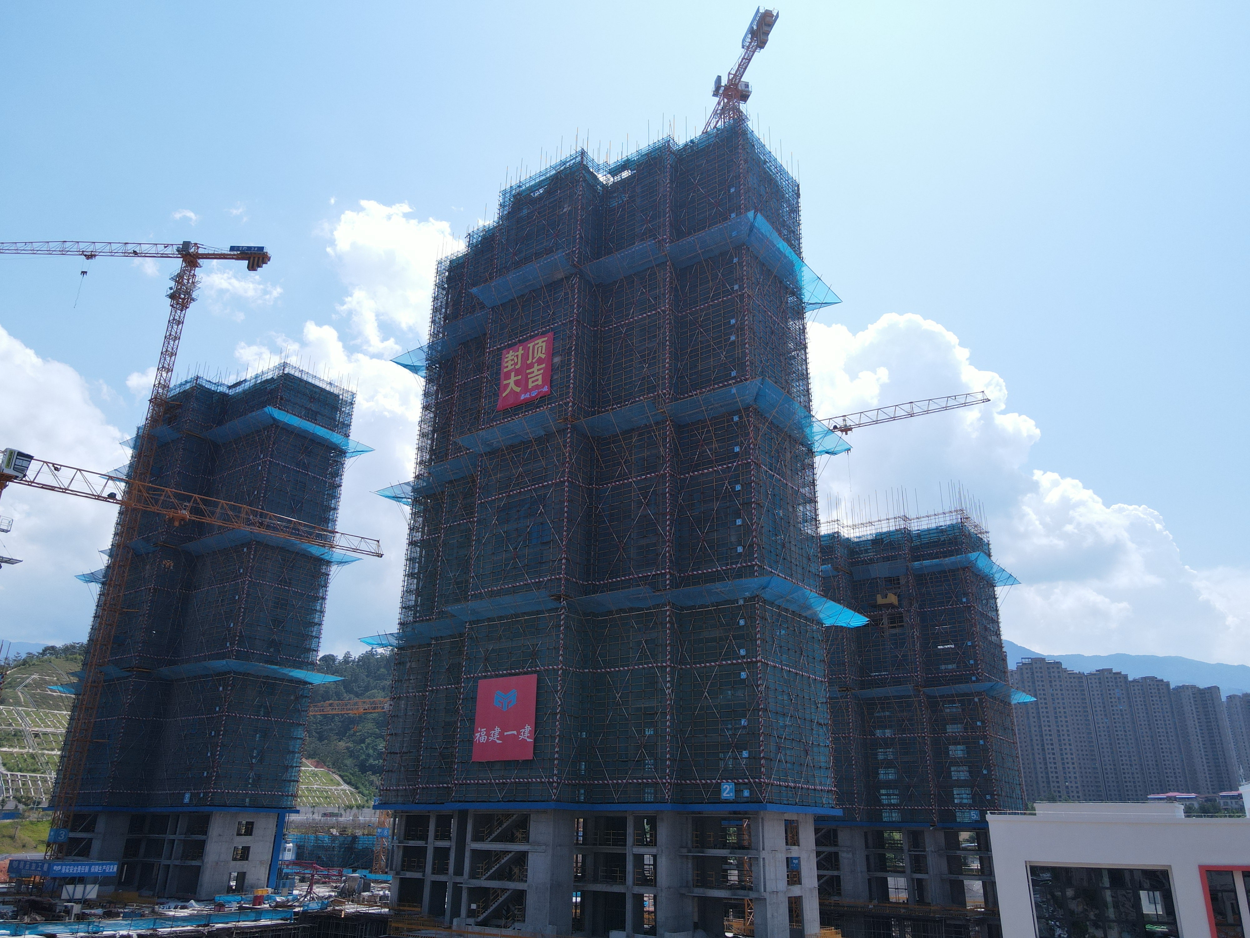 9月22日,隨著最后一方混凝土澆筑完成,標(biāo)志著交發(fā)首郡項(xiàng)目首棟主樓——2#樓順利封頂。