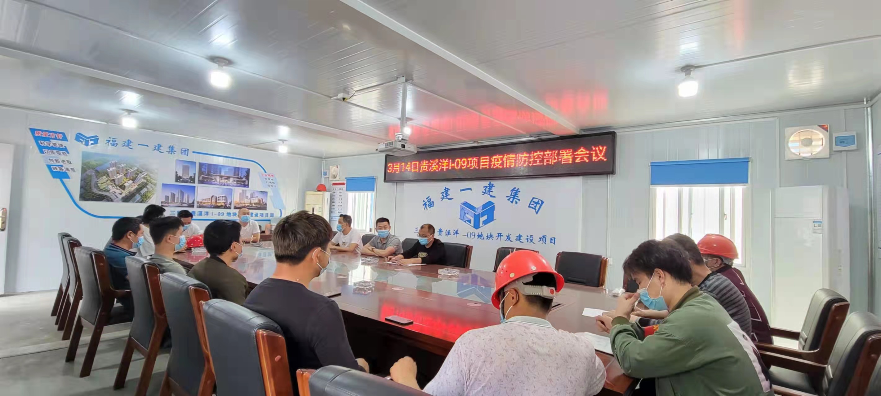 施工行業(yè)具有從業(yè)人員多、人員流動性大等典型特點,是疫情防控的重點、難點領域之一,為提高各級防控意識,確保防控措施落實到位,各在建項目召開疫情防控部署會議,迅速傳達貫徹省、市、縣疫情防控工作會議精神,切實增強責任意識、危機意識、底線意識,抓細抓實各項措施,切實堵上防控漏洞、補齊短板弱項,全力筑牢疫情防控堅固防線。