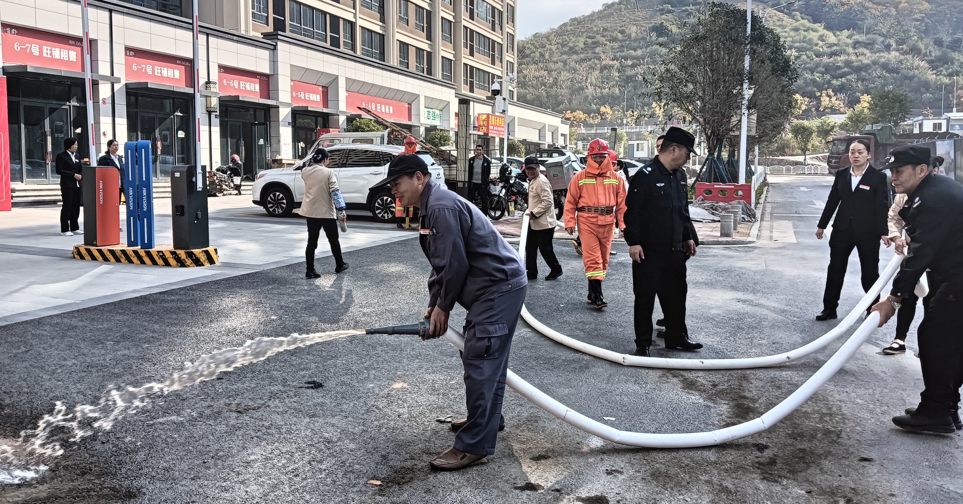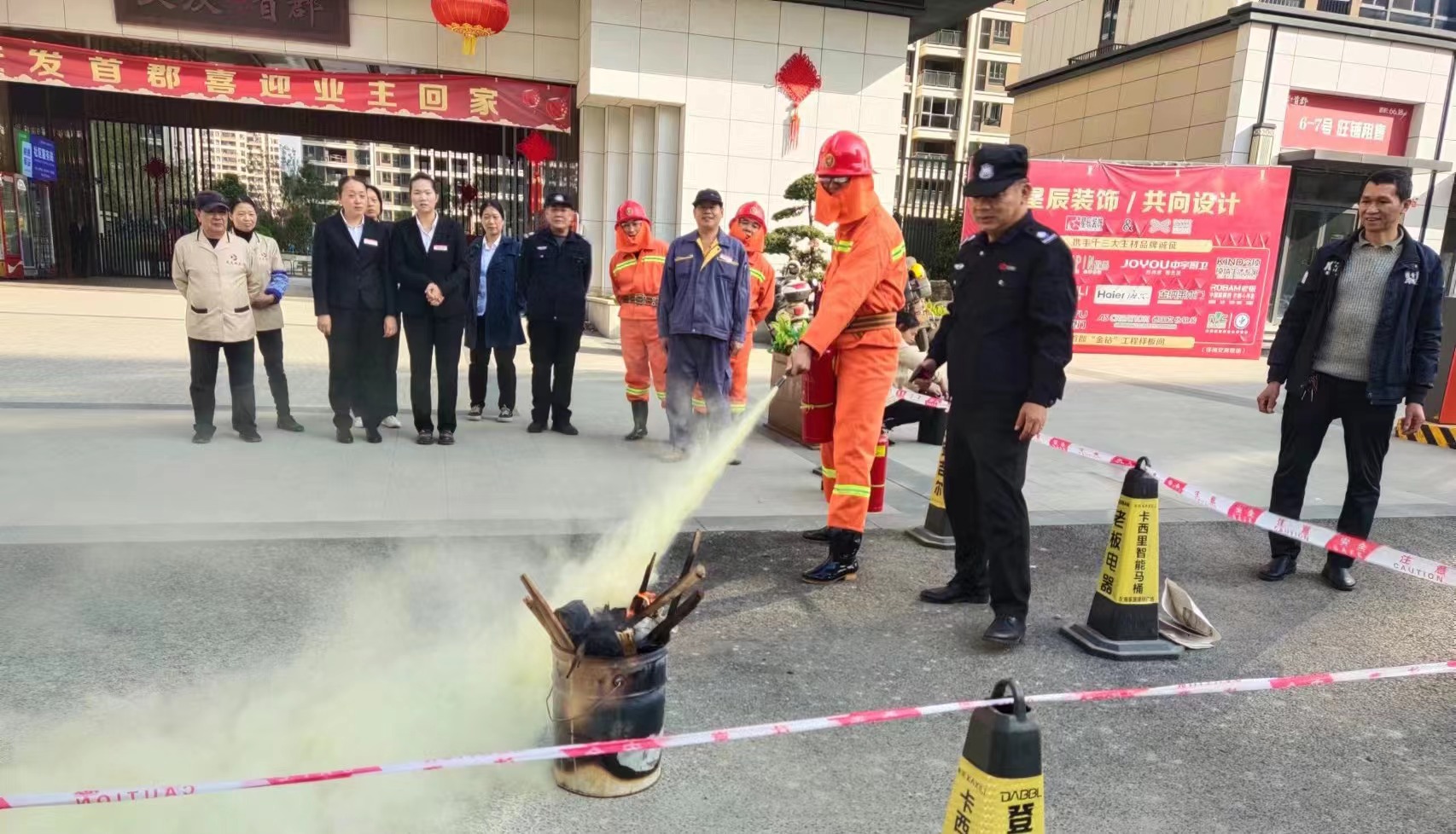 此次活動分為消防培訓(xùn)和模擬救援兩個環(huán)節(jié)。演練開始前,交發(fā)首郡物業(yè)服務(wù)中心負(fù)責(zé)人采取器材示教、體驗(yàn)互動的方式,就起火如何疏散逃生等知識進(jìn)行講解,對滅火器、消防水帶、消防水槍等消防器材使用方法進(jìn)行示教,并按照職責(zé)分工對滅火行動組、設(shè)備保障組、醫(yī)療救護(hù)組、疏散引導(dǎo)組等小組演練流程進(jìn)行講解和細(xì)化。在演練總指揮的調(diào)度下,各小組分工明確、默契配合,按照發(fā)現(xiàn)火情、緊急聯(lián)絡(luò)、設(shè)置安全警示帶、滅火行動、人員疏散引導(dǎo)、傷員救護(hù)等消防應(yīng)急演練項目有序進(jìn)行。