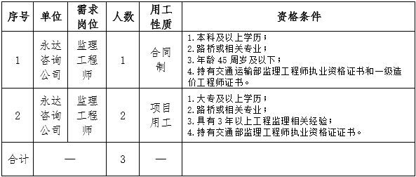 因工作需要,按照公開、公平、公正、競爭擇優(yōu)的原則,面向社會公開招聘人員3人,其中合同制1名,項目用工2名,現(xiàn)將崗位招聘信息發(fā)布如下: